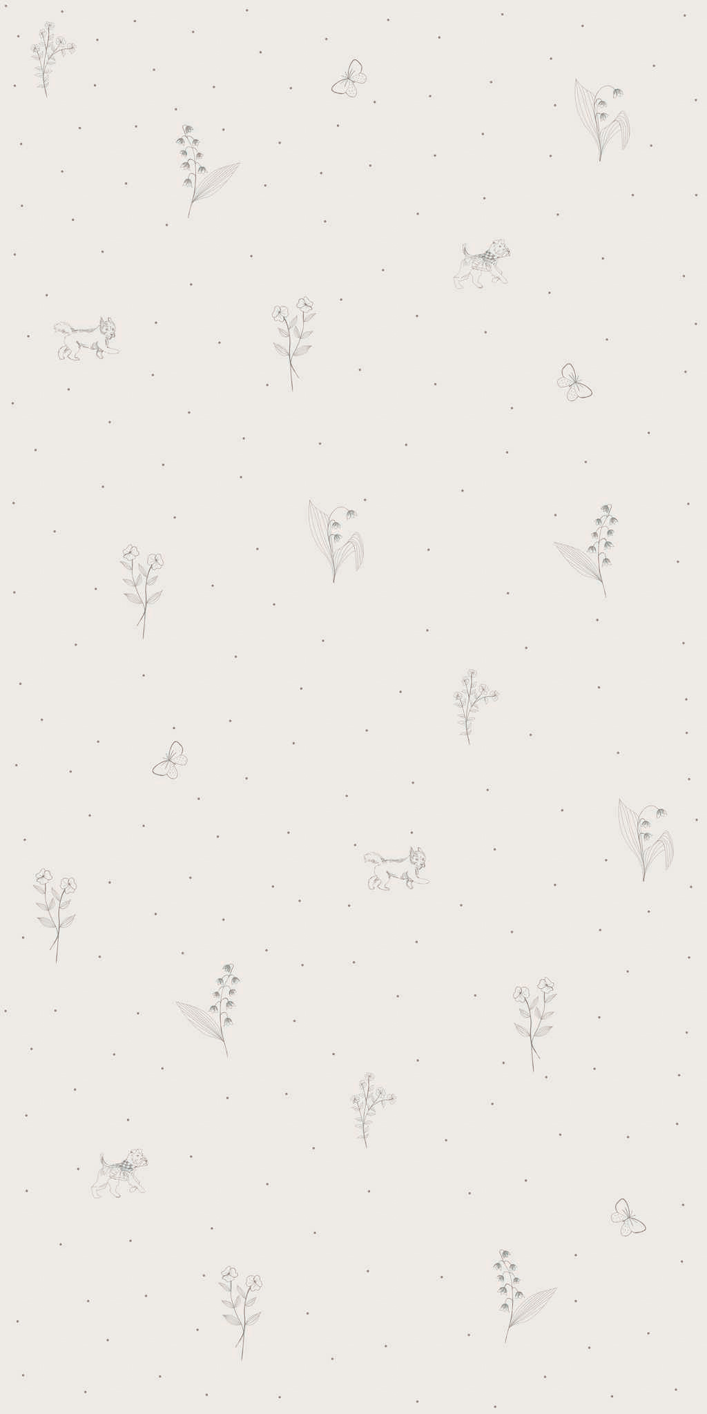 Szara tapeta w gałązki i pieski – w rolce
