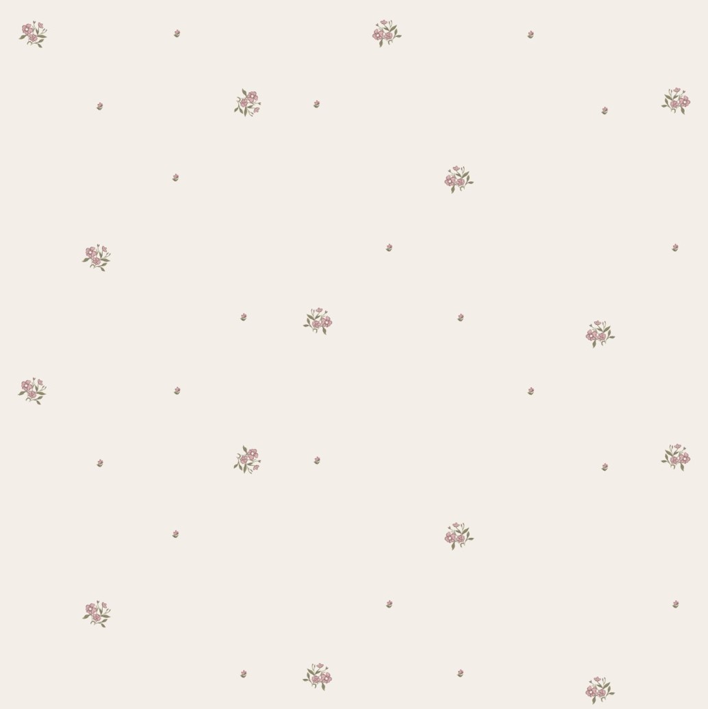 Tapeta w drobne różowe kwiatuszki. Idealnie sprawdzi się do pokoju dziewczynki.