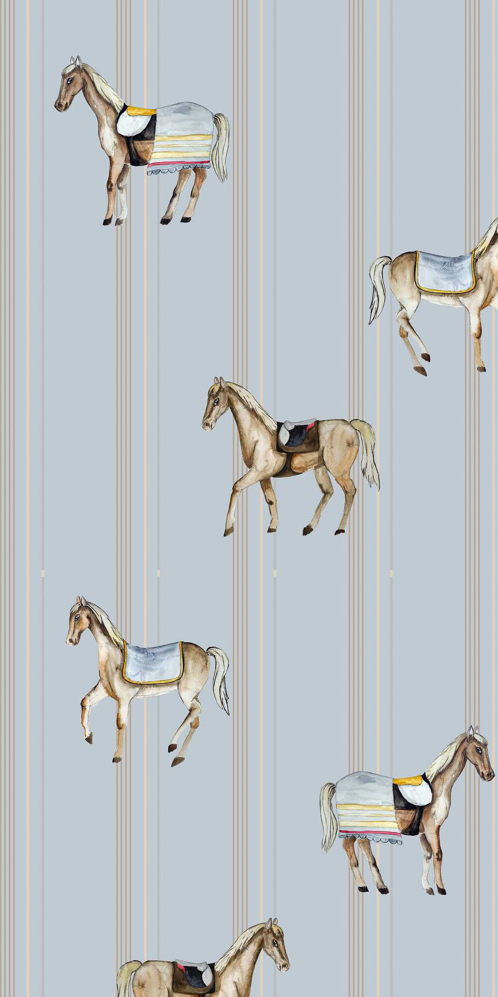 Tapeta Flizelinowa Konie w Błękitne Pasy, Dekoracyjna Tapeta na Ścianę do Pokoju Dziecięcego, Łatwy Montaż