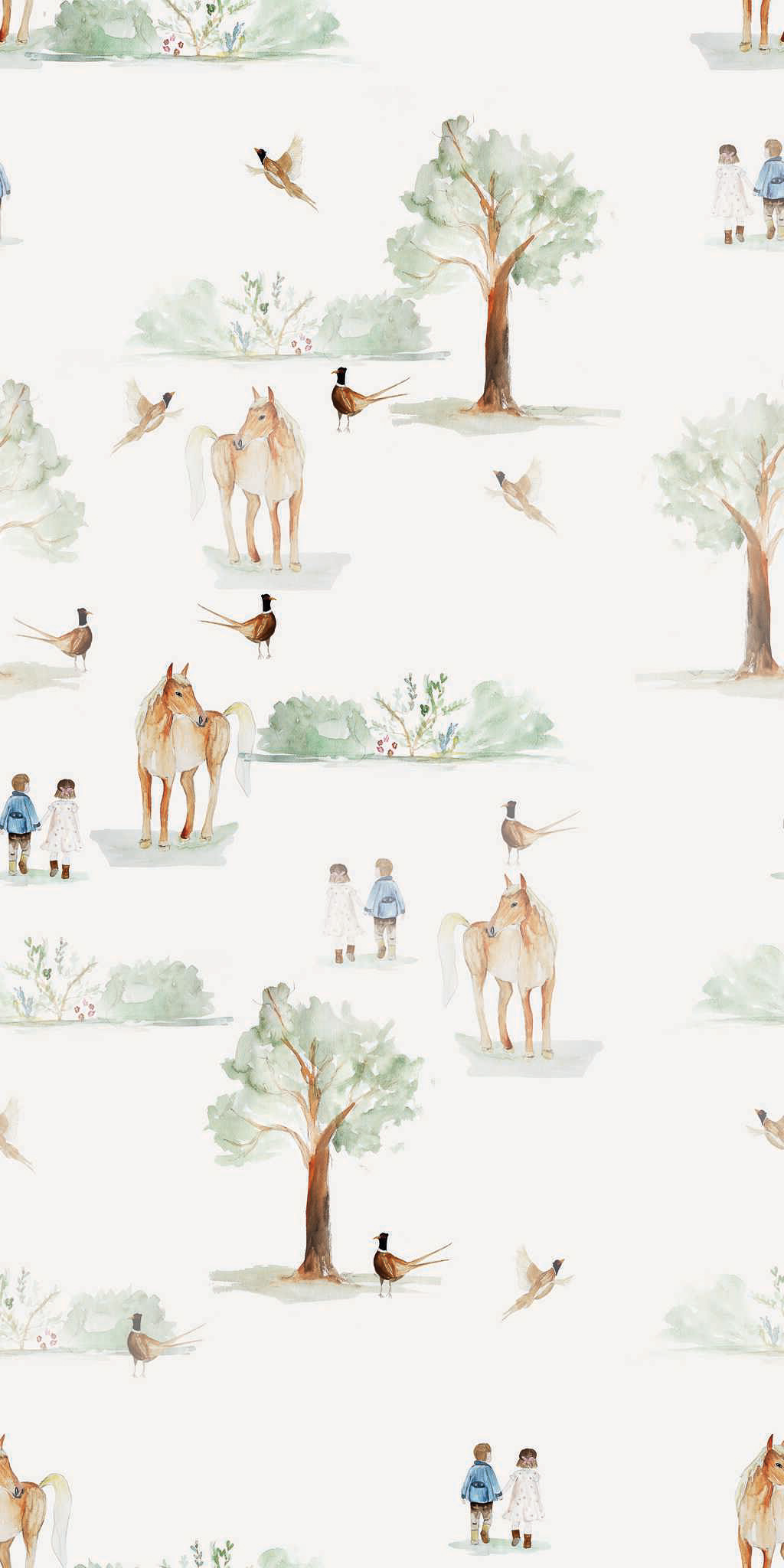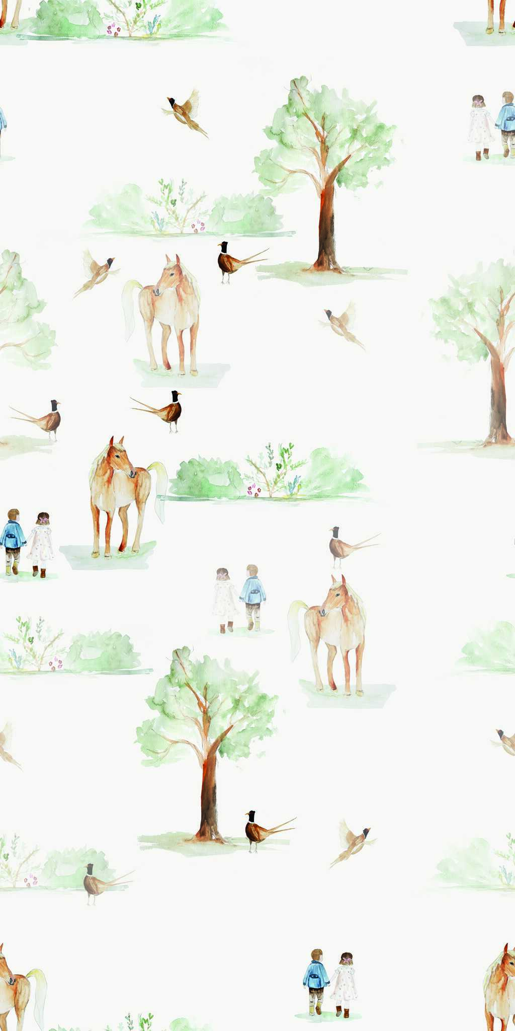 Tapeta vintage w konie leśne dla dzieci – w rolce
