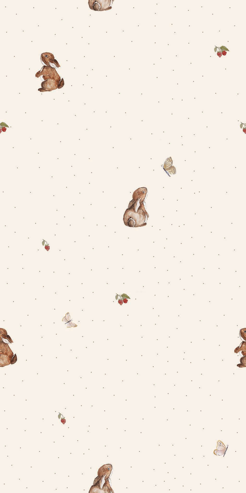 Rustykalna tapeta w króliczki i malinki – w rolce