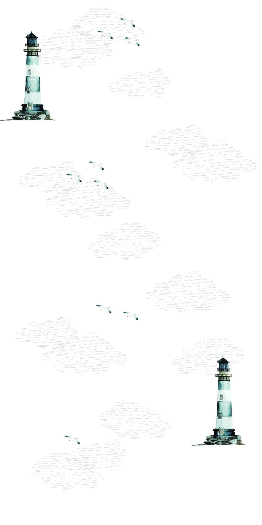 Tapeta morska – latarnia morska, mewy i chmury – w rolce