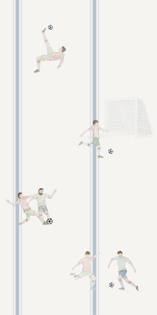 Tapeta do pokoju chłopca – Tapeta piłkarska w błękitne paski | Delikatna dekoracja