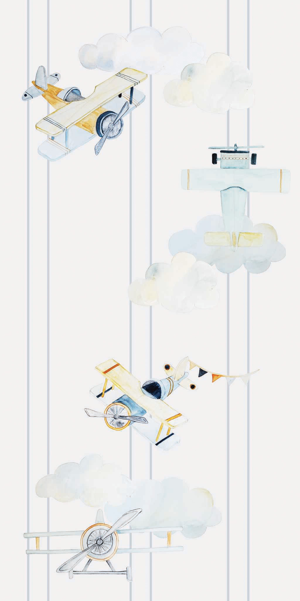 Tapeta dla chłopca w samoloty i paski – w rolce
