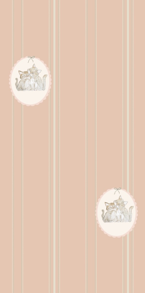 Tapeta do wnętrz w stylu farm house – Tapeta z kotkami pasek na różowym tle| Delikatna dekoracja